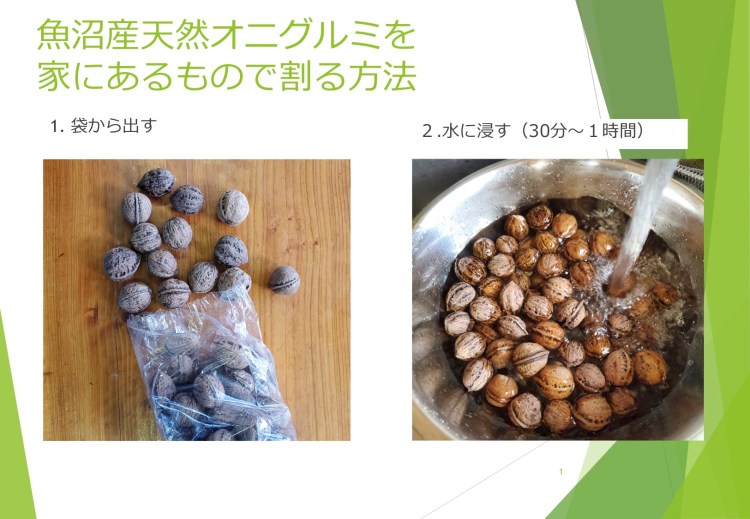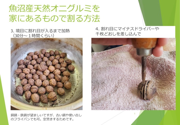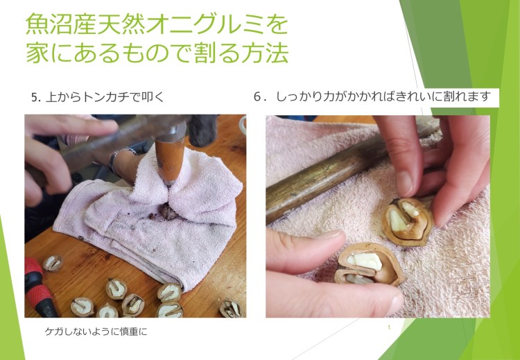 鬼くるみ 出荷します 投稿者:yoneshin2021年11月7日2023年7月4日カテゴリー:ものずき村と地域の紹介 今年最後の東京出荷品として、魚沼の山里の天然物の鬼くるみを販売します。割って楽しい掘って美味しい、鬼くるみを冬に味わってください。 クルミ割り器がなくても割れる、鬼くるみの扱い方 共有: クリックして X で共有 (新しいウィンドウで開きます) X Facebook で共有するにはクリックしてください (新しいウィンドウで開きます) Facebook 関連