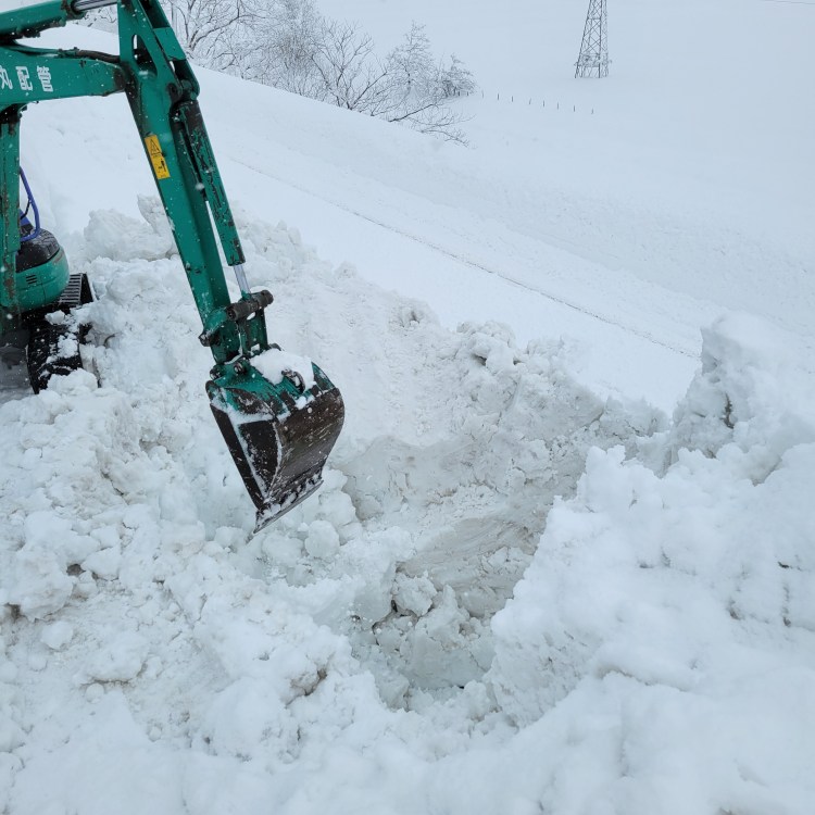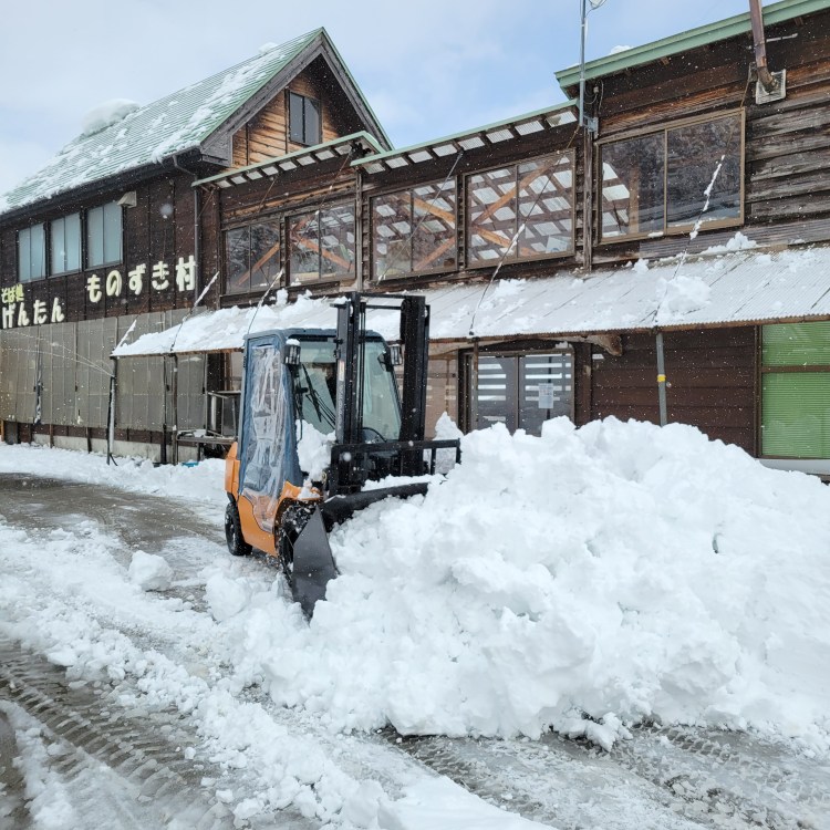 ものずき村は只見線が見下ろせる位置にあるため、除雪作業中の雪が只見線に落ちていってしまわないように気をつけます。