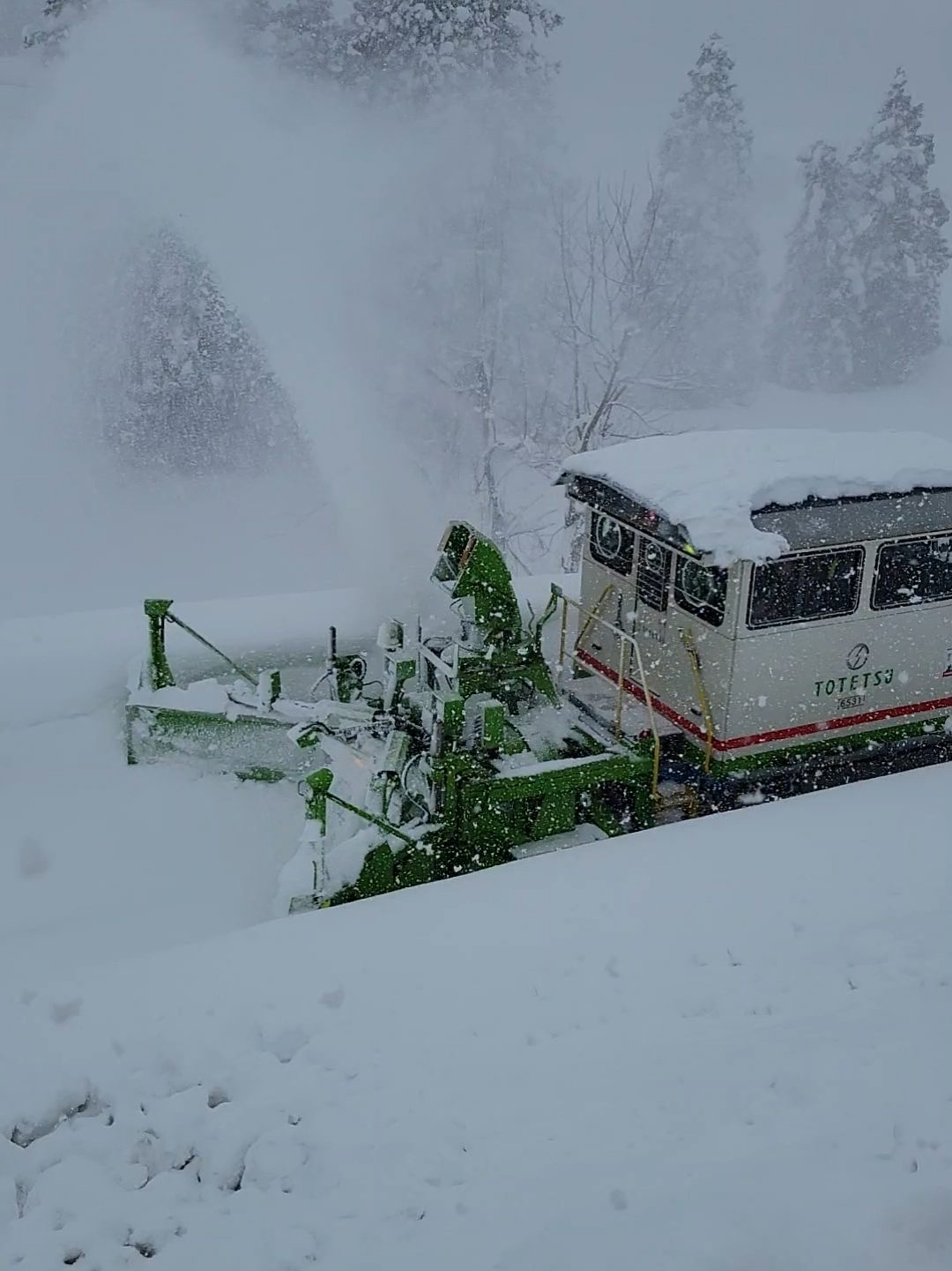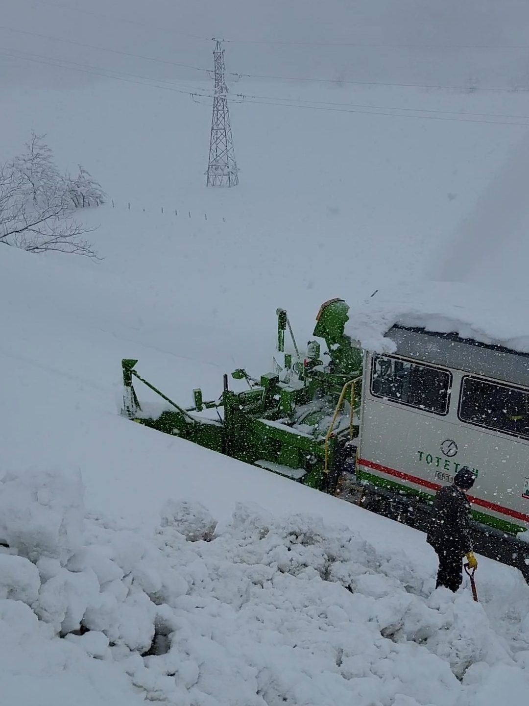 たまたま只見線をロータリー車が通りかかって雪を吹き飛ばしてくれました。