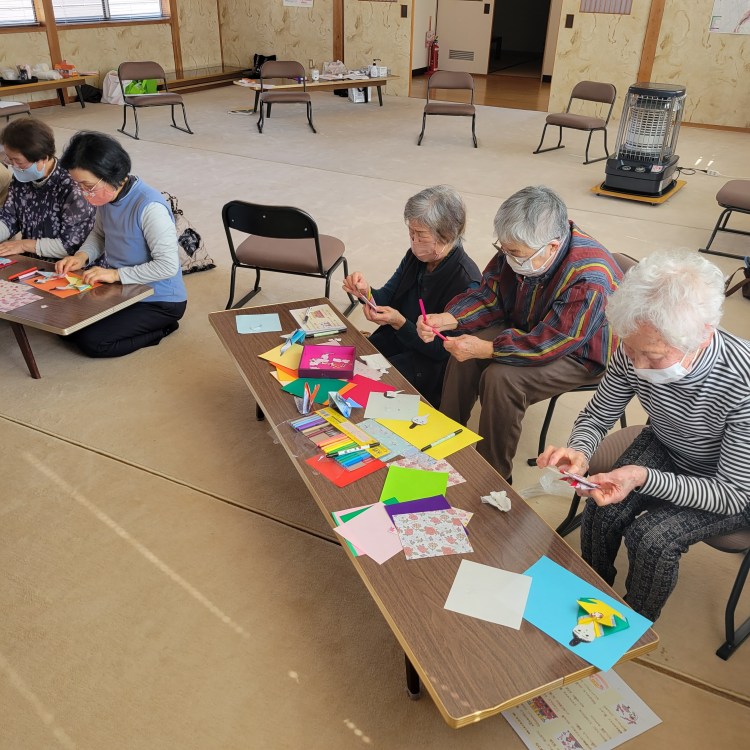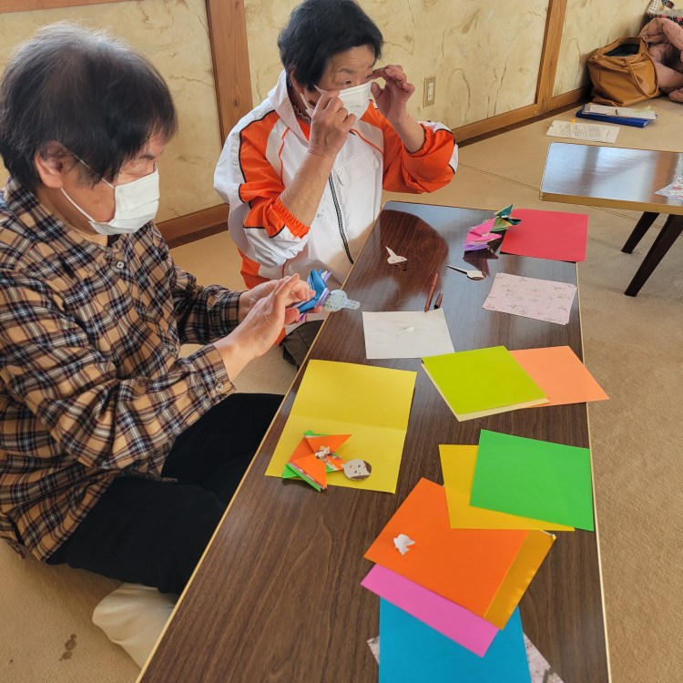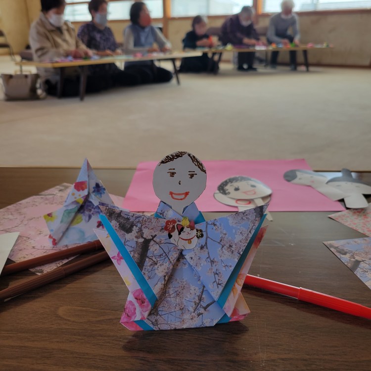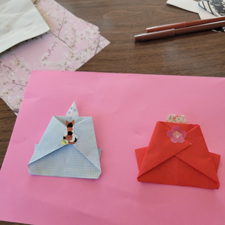 今月は和暦のひな祭りに向けて、折り紙で飾りびなを作ります。