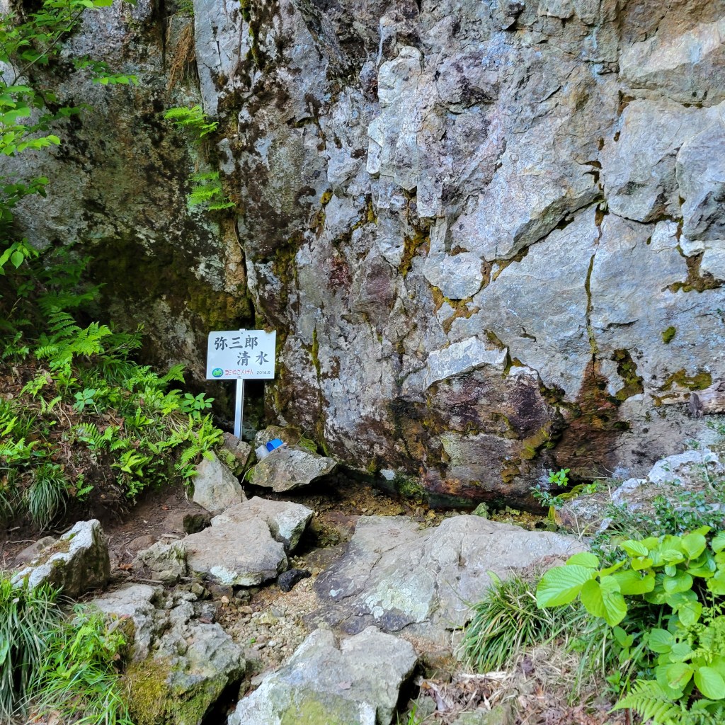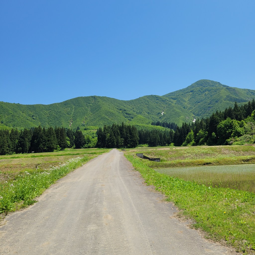 権現堂山は、旧広神村一帯を見守る山として地域の人々に親しまれています。手前に下権現(897m)、奧に上権現(997m)があり、その先には唐松岳(1079m)が連なります。