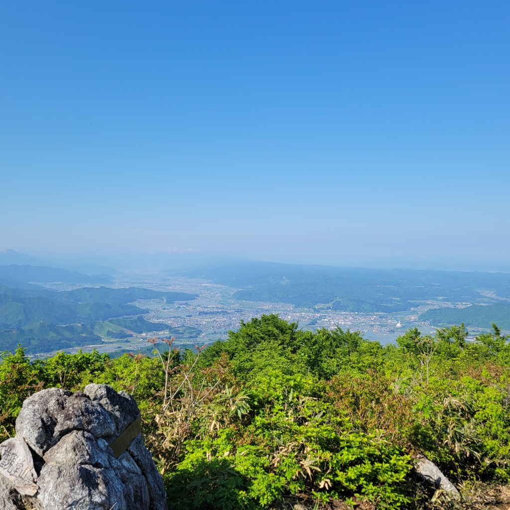 頂上からは、魚野川と破間川が形成した魚沼盆地の全体が見渡せます。ほぼ休みなしで登るのに二時間かかりましたが、苦労した甲斐のある眺めでした。