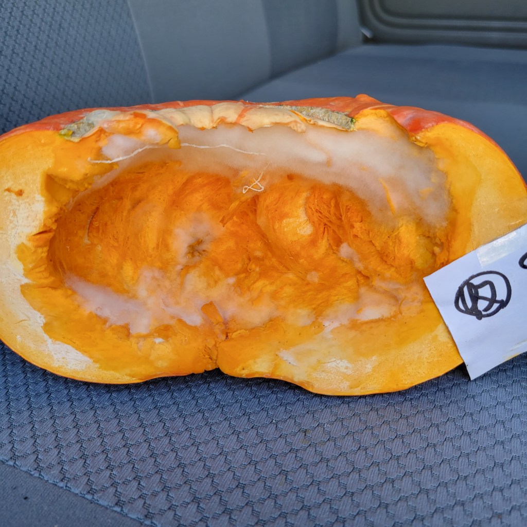 今回、収穫後廃棄した個体が4個ありました。いずれも、保管中にカビが発生。通気が不十分だったようです。