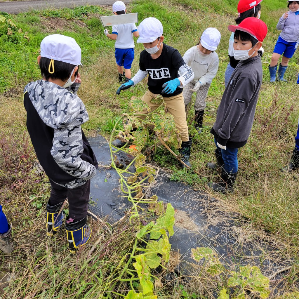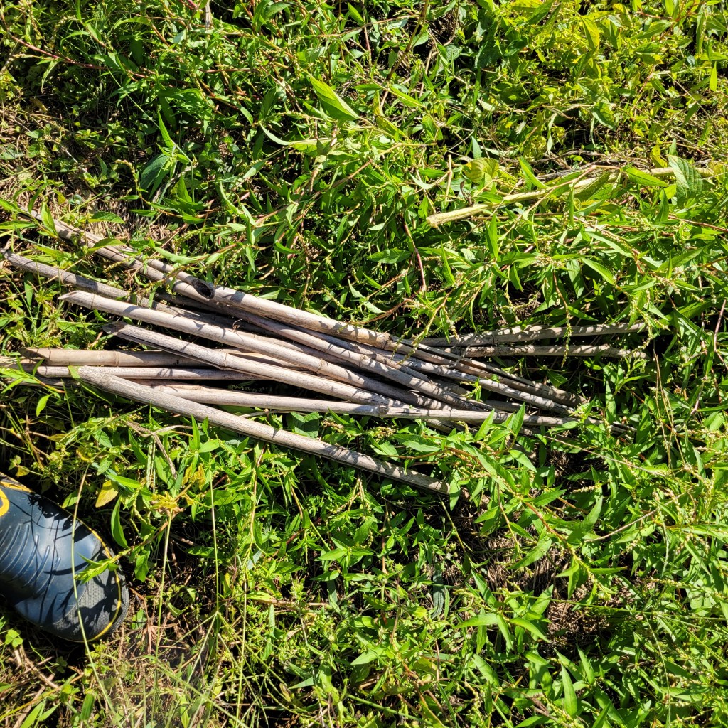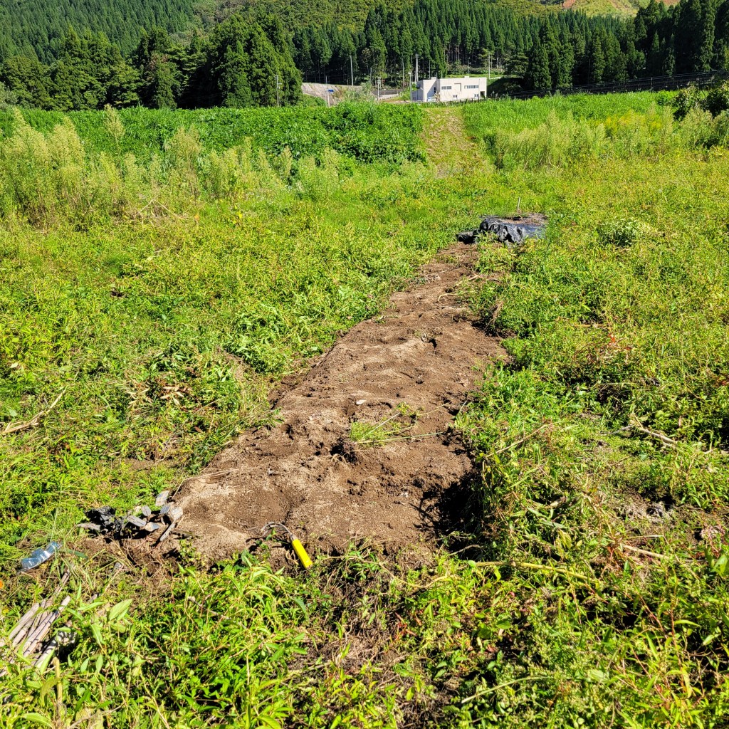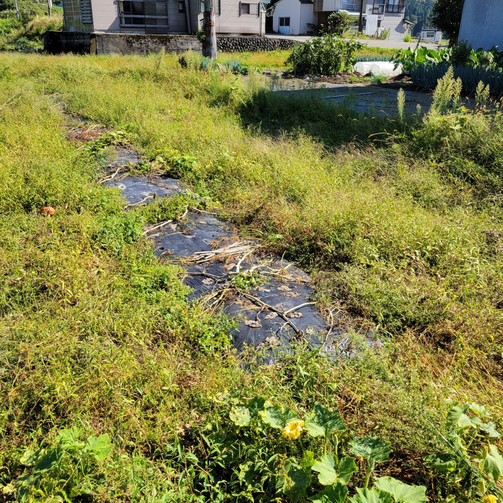 先日行った畑の整理。蔓を抜き、マルチをはがし、使った竹や座布団を回収していきます。
