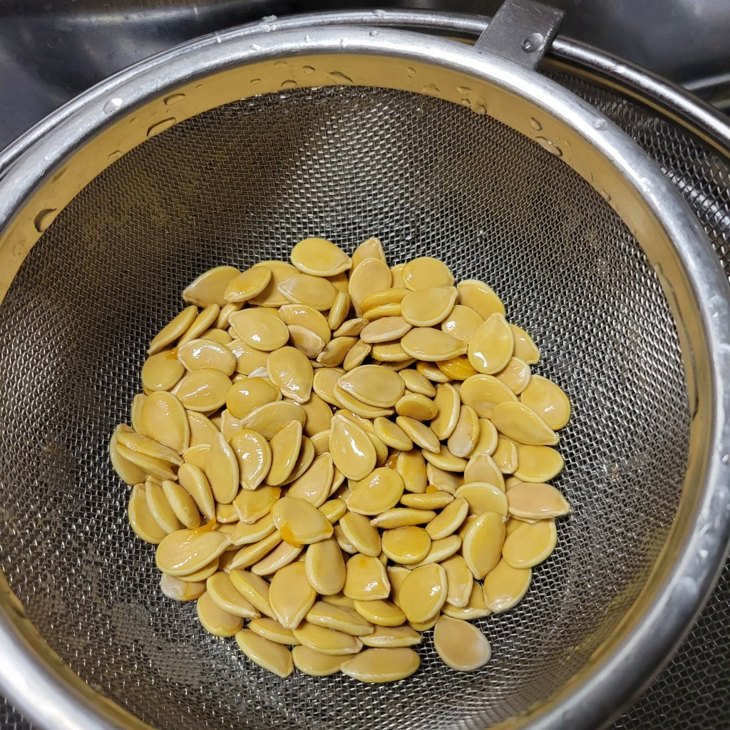 種をとりました。来年のあかもんの準備です。育苗の後、優秀な苗を定植します。