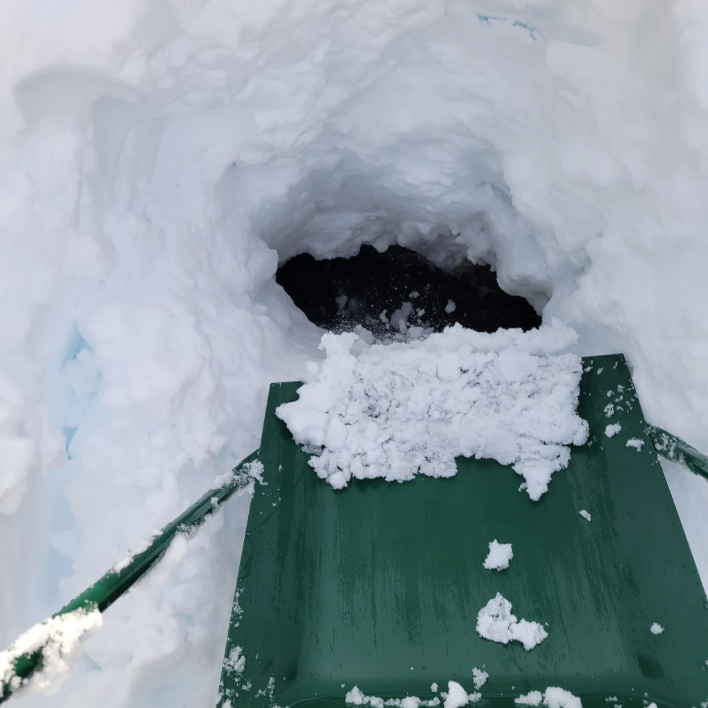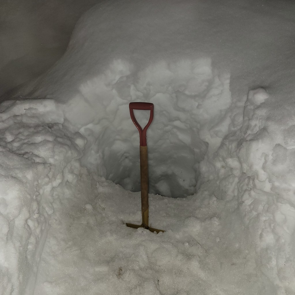 仕事の合間合間に進めた雪堀りは、夜になってやっと終わりの目処が立ちました。