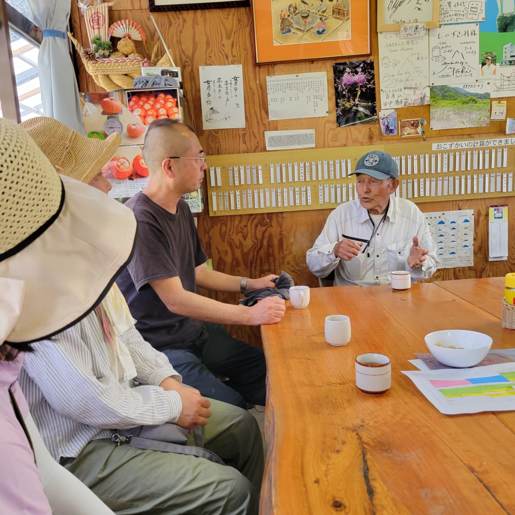 作業後はものずき村の村長にごあいさつ。以前は建設業で働いたこと、その後農業を始め、ものずき村に野菜を出すようになったこと、ささやかな収入でも、自分で計画して自分で育てる、失敗も成功も全部自分に還ってくる、頭を下げてばかりだった以前に比べ、いかに楽しく人生を満喫してきたかを語ってくれました。
