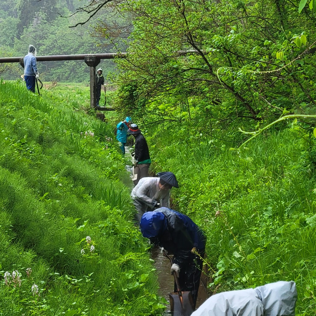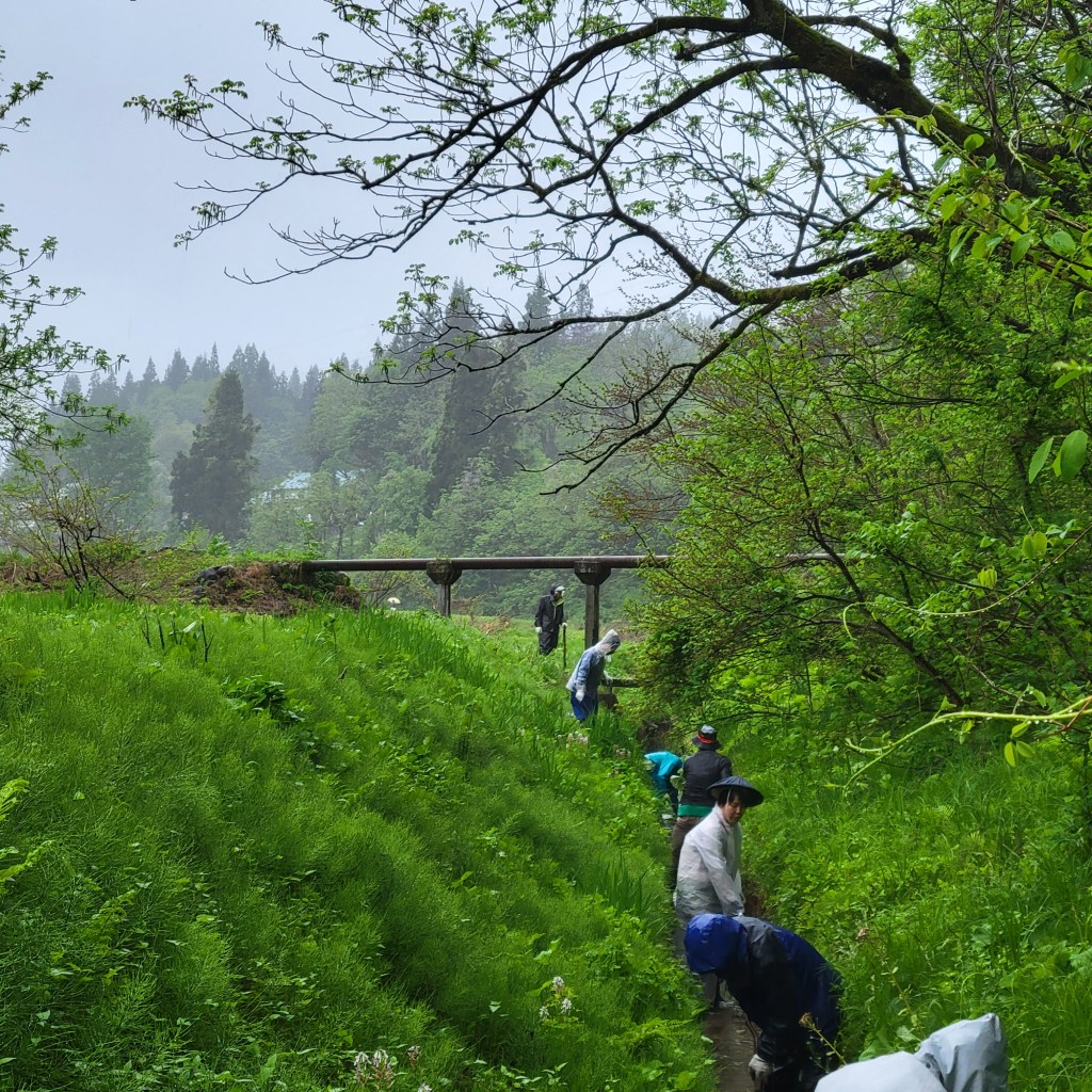 集落総出で田畑への水の導線を確認します。冬は雪に閉ざされる魚沼の農地のため、今年の農地を運用するためにとても重要な作業です。ここには暮らしの本質的なところは住民が自分たちで行う、という風土があります。この水を利用して農業を営んでいる人は数少なくなりましたが、雪掘りと並んで、雪国に暮らす人の暗黙の協力関係を象徴する協働作業となっています。