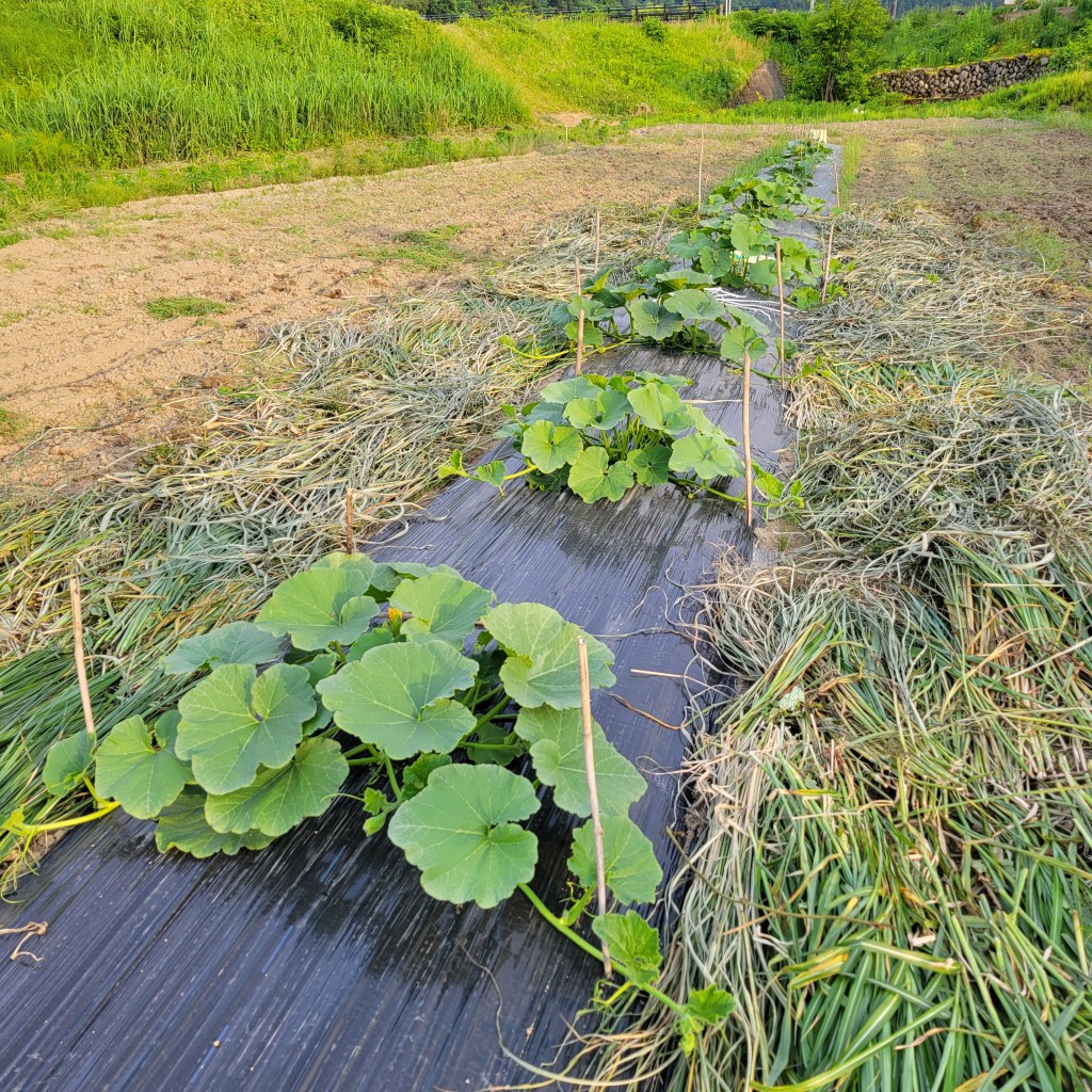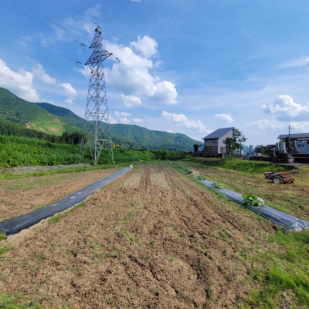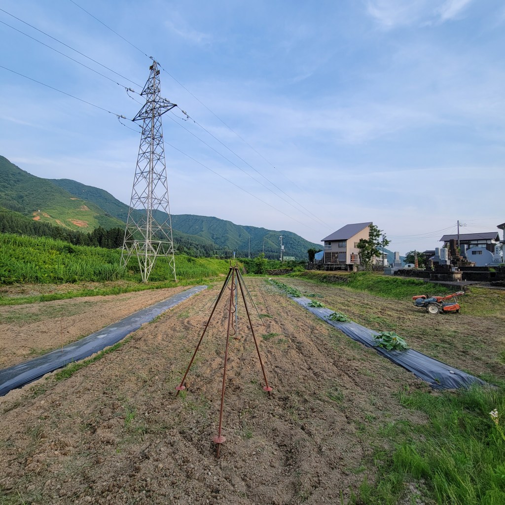 空中でならせるための三脚もセットしました。雑草を排除するのは、虫があかもんの見に寄り付かないようにしたいためです。同じ理由で、今年はつるを空中に持ち上げてあかもんの実が畑の面から遠ざかる工夫もしてみます。乞うご期待。