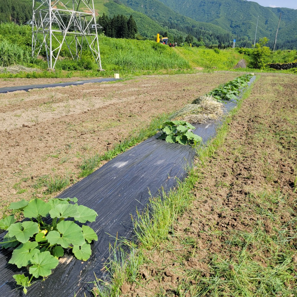 仕上げは茅敷です。このあとはもう耕運は出来ません。あかもんのつるが伸びていく場所だからです。代わりに畑に茅を敷いて雑草の成長を妨げます。