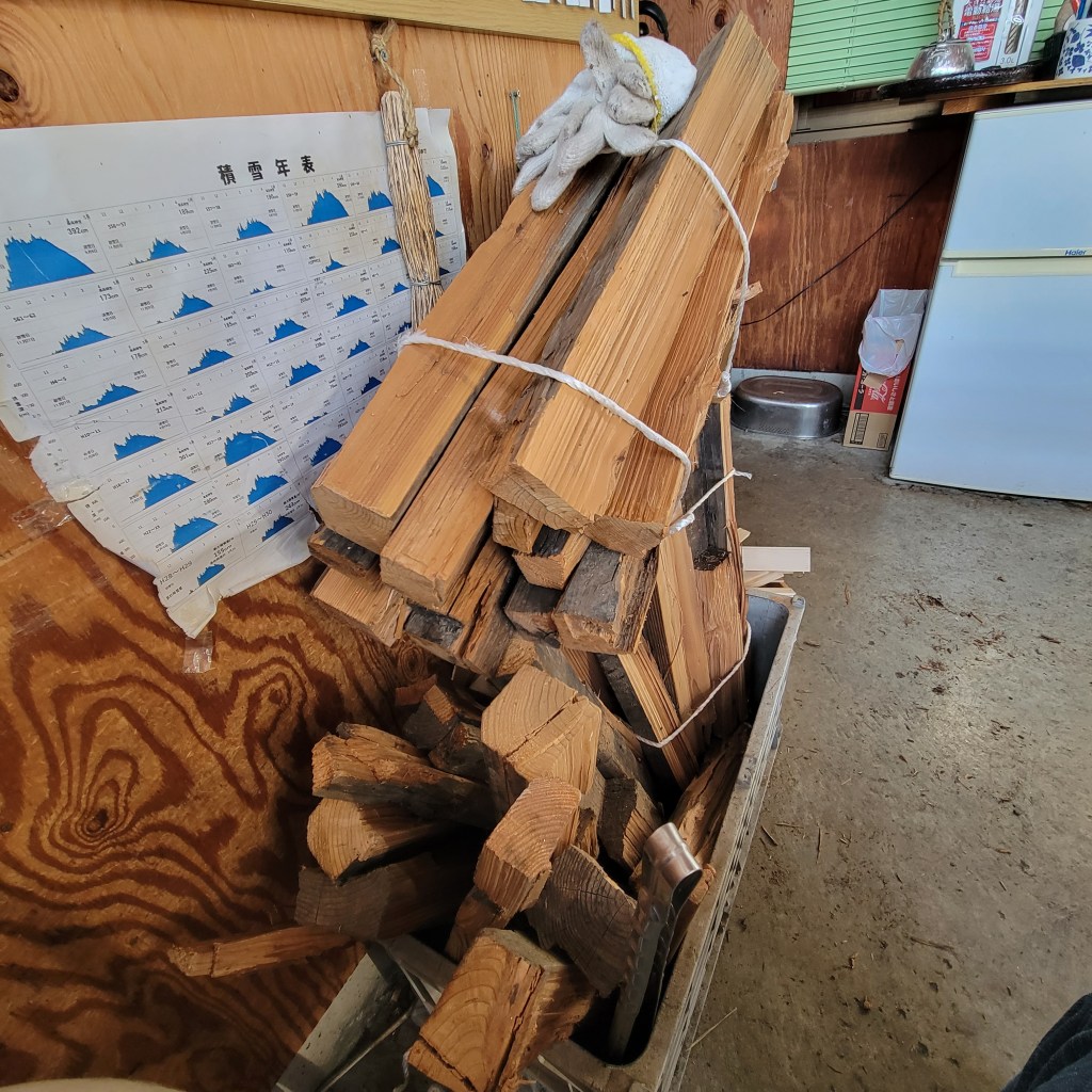 ものずき村は11月に入ると薪ストーブを設置し、植林された林で育てられた木材の廃材を燃やして暖を取ります。通常3月になれば、そろそろ片付けようか、という話になるところですが、今年はまだまだ寒く、そんな声は聞かれません。
