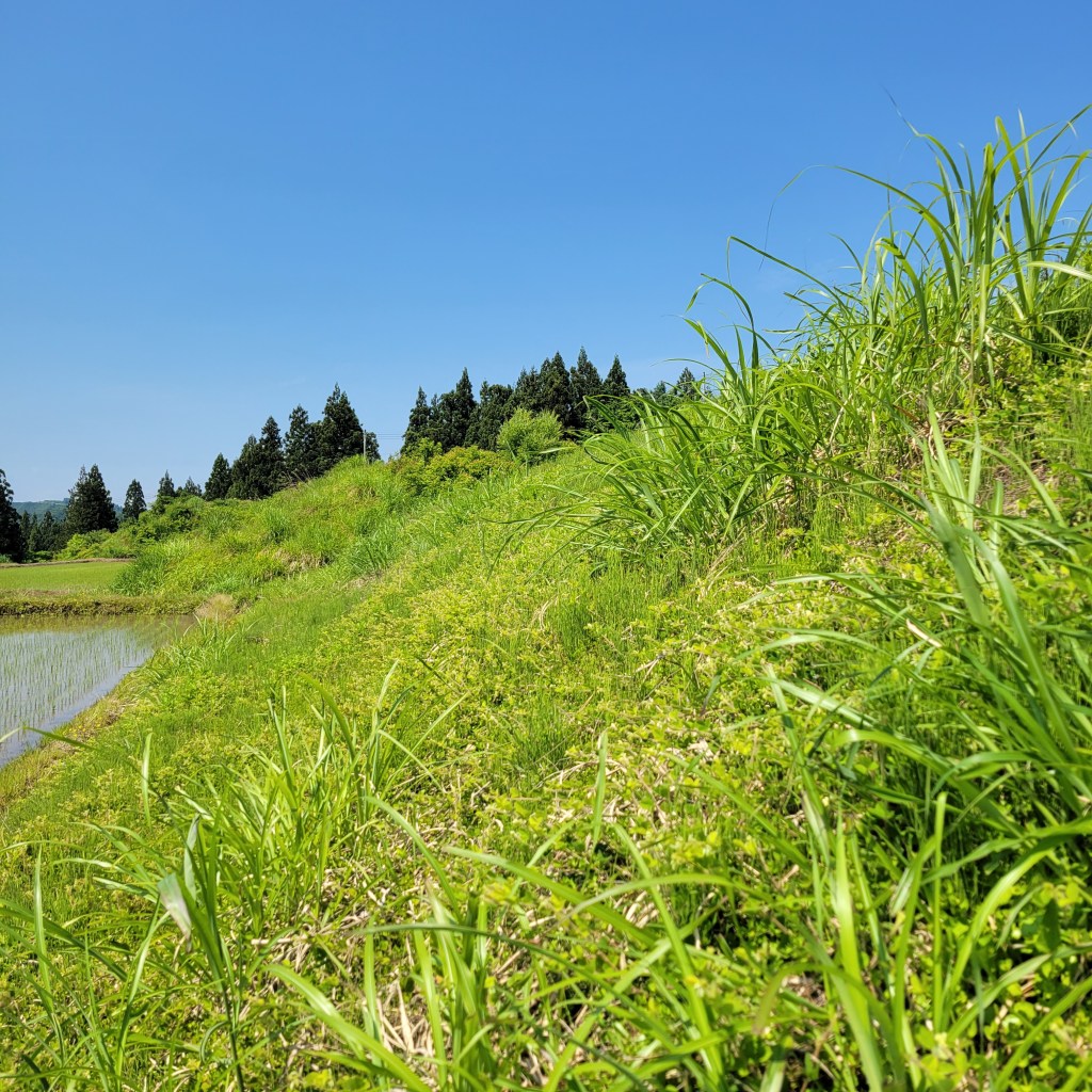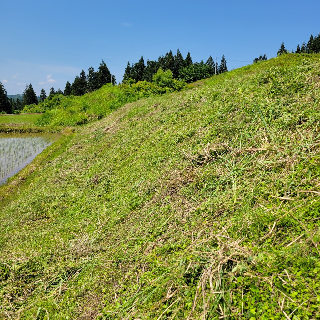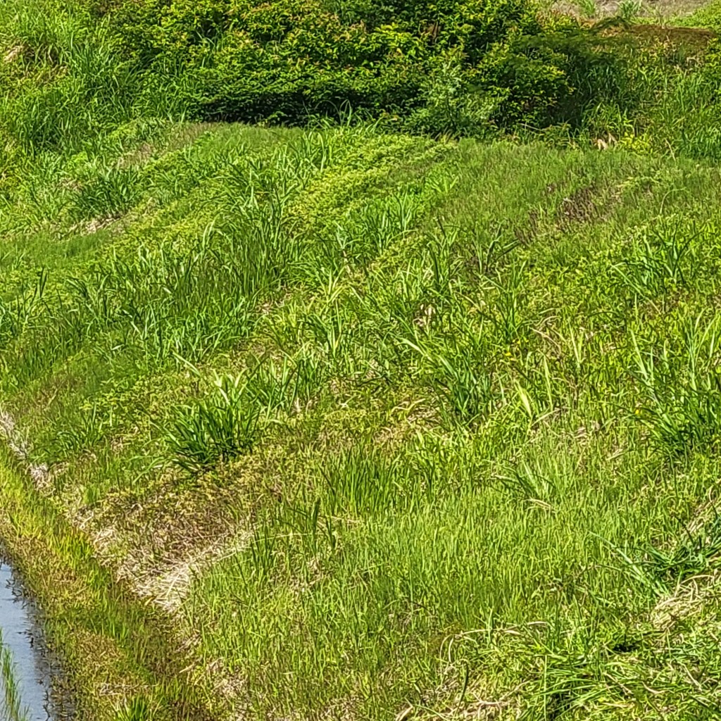 今日の様子。1ヶ月でこれだけ伸びますが、また楽しい草刈ができます。除草剤を使えば、確かに草はなくなりますが植生がなくなるとあぜも弱って壊れやすくなると言います。できれば草を生き絶やすことなく、短く刈ってあぜを守りつつ虫や蛇の温床にならないような管理を心がけたいものです。