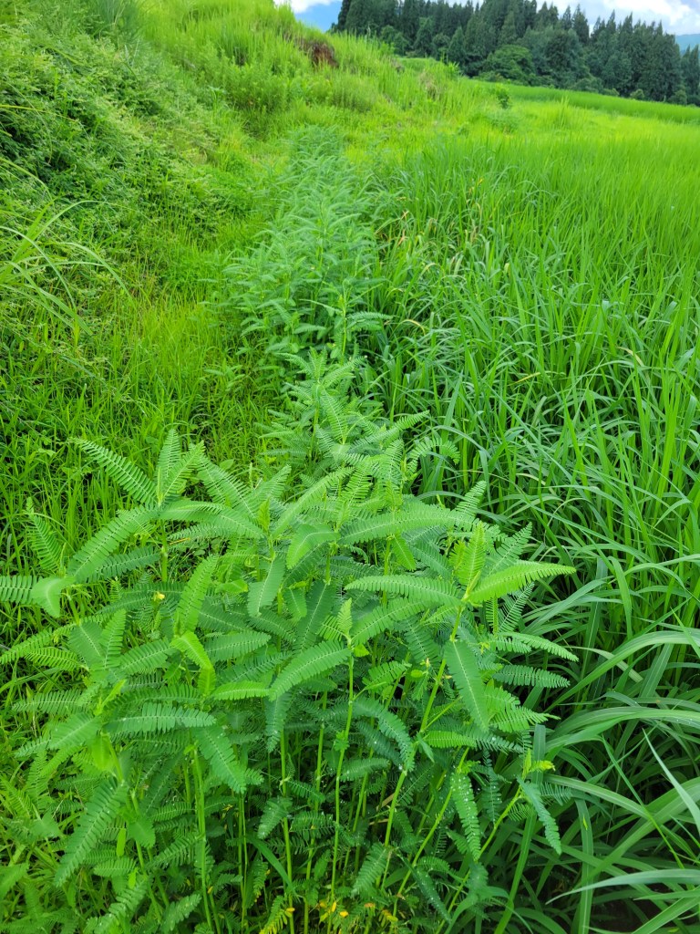 7月12日 あまり気にしていなかった雑草ですが、草ネムはタネが米粒と似ていて精米後にかなり厄介な存在となると聞き、この後見つけたら必ず抜くことを決意