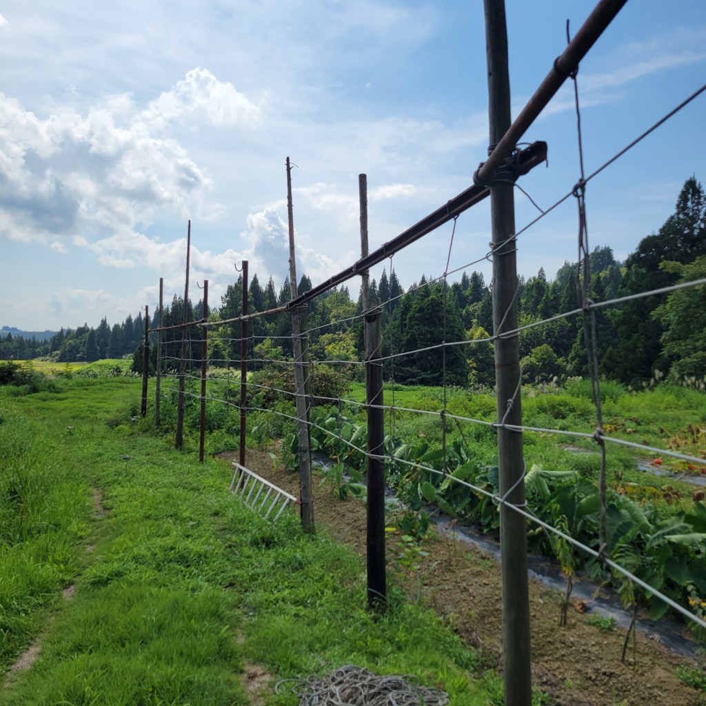 9月6日 稲刈り後の稲束を干すためのハザを組み上げます