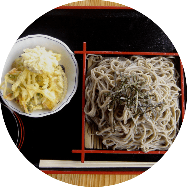 「減反」政策でできた地元のそば粉と、中越の布海苔を使い、美味しいふのりそばを提供しています。眼下の四季折々の風景とともに、この場所での時間をゆっくり楽しんでください。