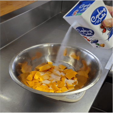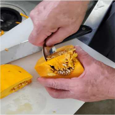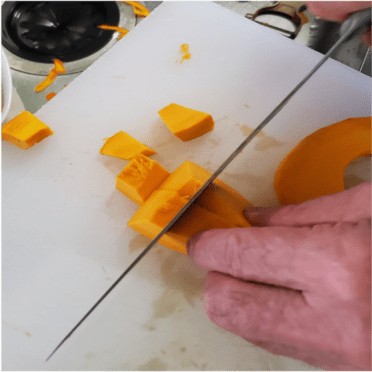 ①皮が気になる方は初めにピーラーで剥きます。(剥かなくても美味しく食べられます)