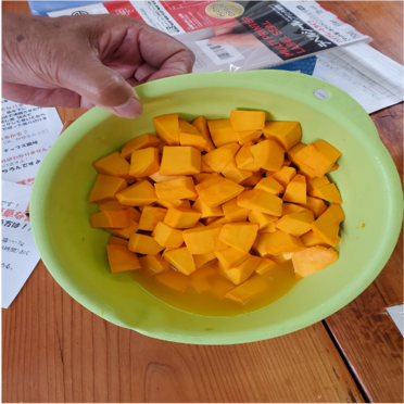 ⑦一晩おくと、あかもんから十分な水分が出てきます。