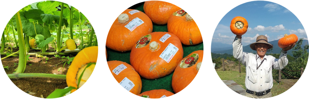あかもんかぼちゃは地域特産の赤カボチャで、濃厚な味わいとほっこりした食感が特徴です。コシヒカリは最も有名なお米。できたお米は魚沼産のコシヒカリです。